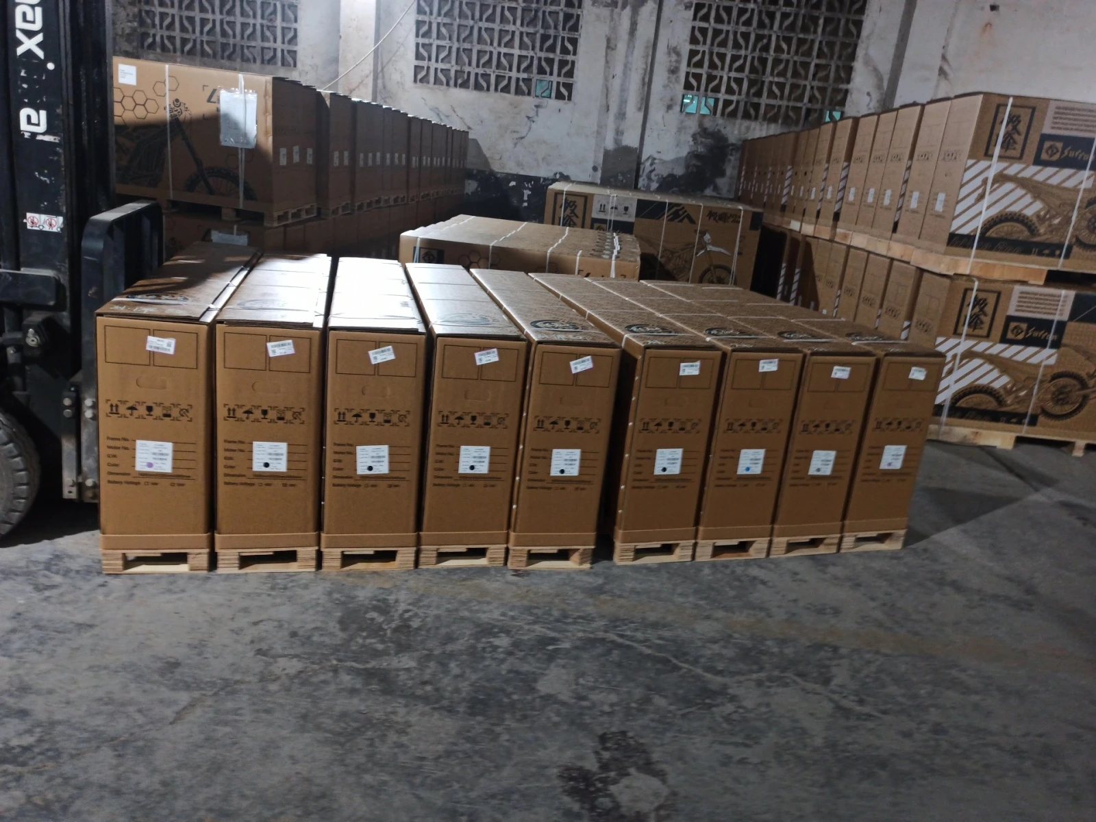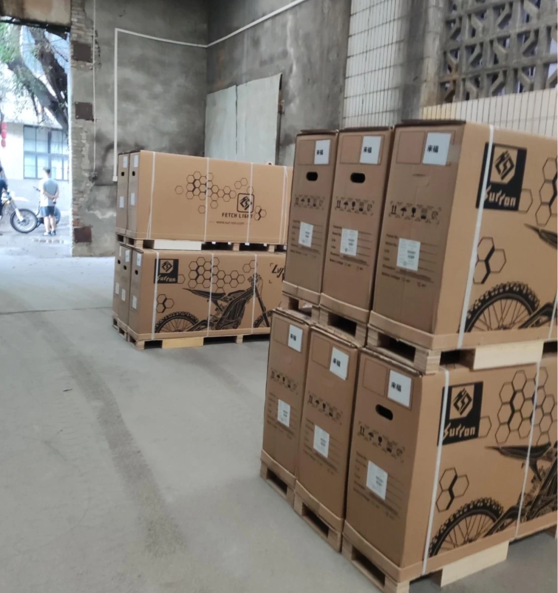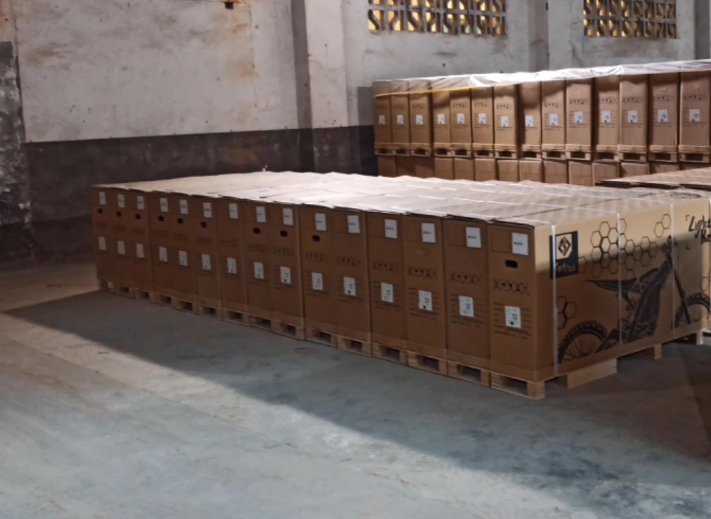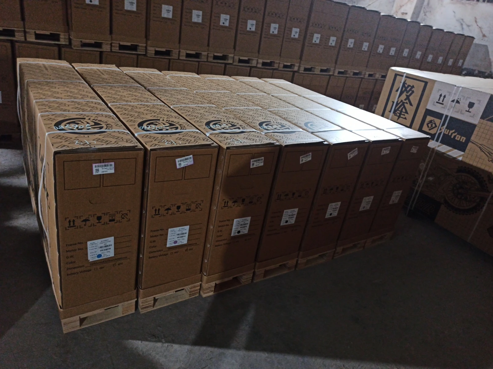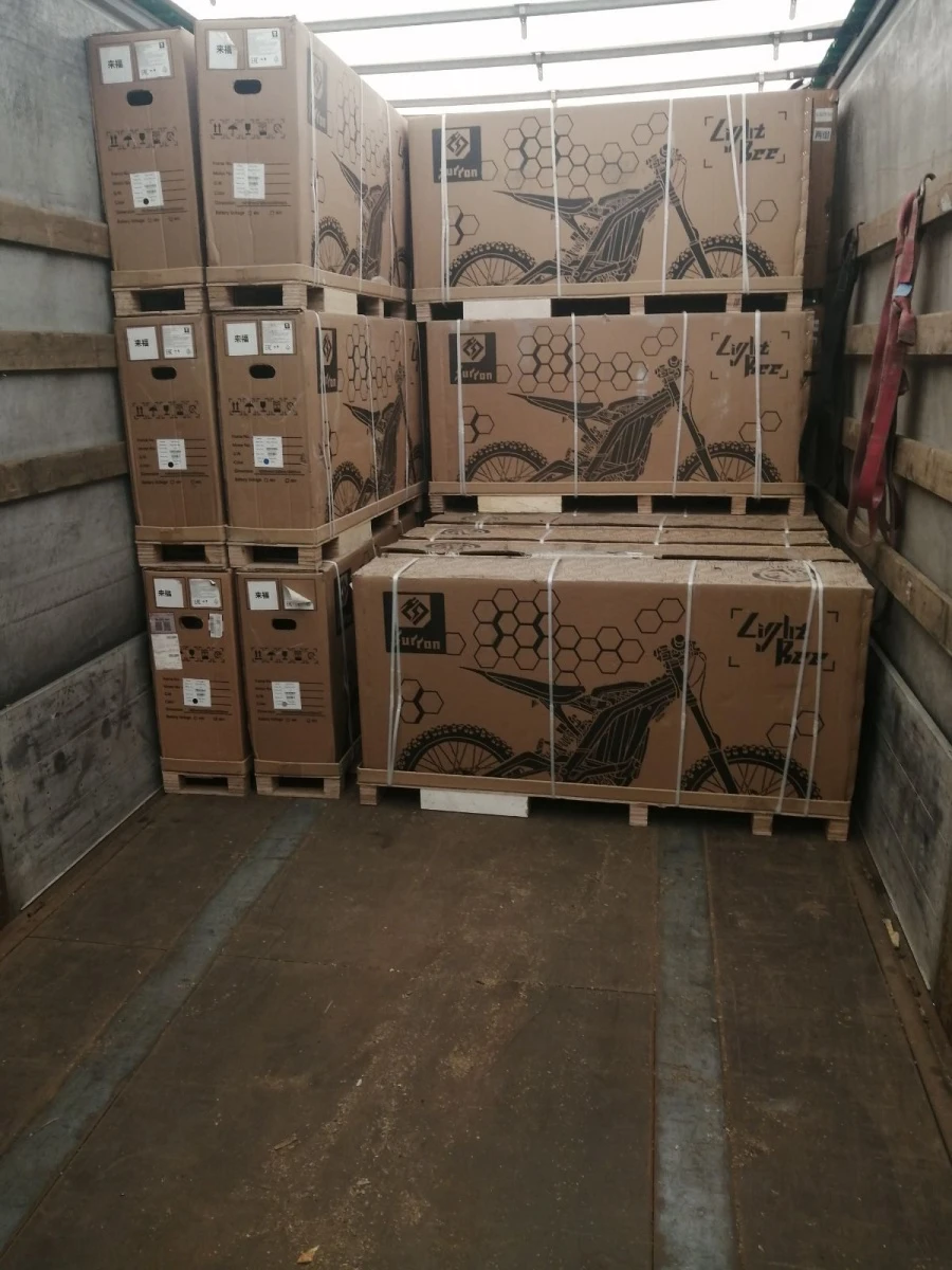 Так выглядят упакованные и готовые к отправке электромотоциклы на нашем складе